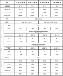 Chilled water inlet/outlet temperature: 12/7℃, Cooling water inlet/outlet temperature: 30/35℃.
